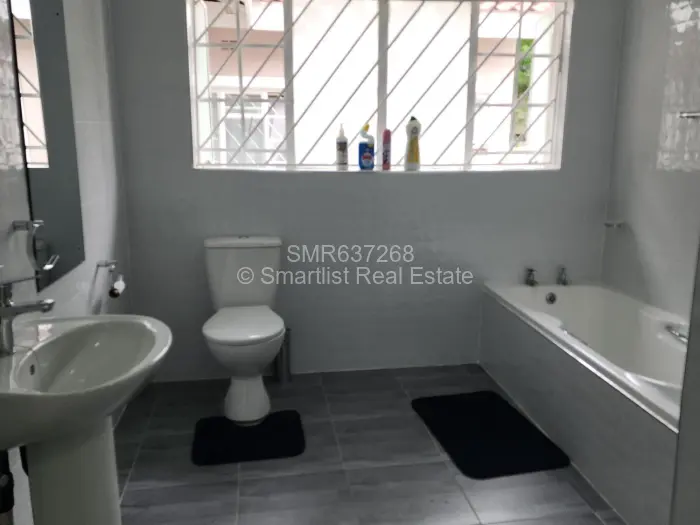 Conveniently located in a quiet and safe neighbourhood in Zimre Park is this recently renovated house. It comprises of four spacious bedrooms and the main bedroom has an en suite, a fitted kitchen, pantry,separate dining, and a shared bathroom. There is also a one bed cottage, double lock up garage, borehole, solar geyser, and 3,2kv solar system. There are two veranda of which the other one can be accessed from the main bedroom.